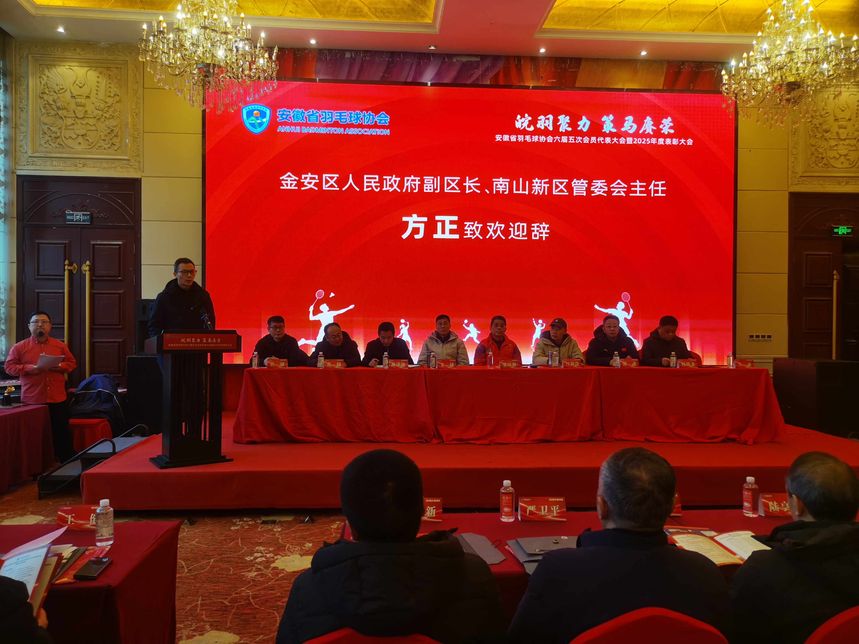 大会在热烈的掌声中拉开帷幕,首先由金安区人民政府副区长方正致欢迎词。作为分管体育、文化和旅游工作的区领导,方正副区长代表金安区人民政府及全区人民,向大会的隆重召开表示最热烈的祝贺,向远道而来、齐聚金安的各位领导、各位嘉宾、全体参会代表致以最诚挚的欢迎和最衷心的感谢,向长期以来关心支持金安区体育事业、羽毛球运动发展的社会各界人士表示崇高的敬意。“此次全省羽协盛会落地金安,既是省羽协对金安区羽毛球事业发展的高度肯定,更是我们学习先进、补齐短板、提升自我的宝贵机遇。”强调金安区将以此次大会为契机,珍惜难得的交流学习机会,认真吸纳各地先进经验,持续加大体育事业投入,进一步完善羽毛球赛事体系、夯实人才培养根基、扩大运动普及范围,着力打造全国知名的羽毛球发展高地。